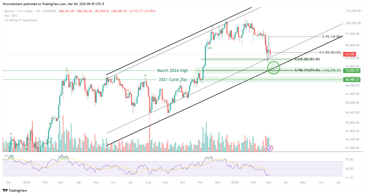 In our last issue I really stuck my neck out, and made some high conviction calls. Namely that BTC would bottom at $73-76k, Total cap at $2.4T, and the S&P 500 would potentially bottom on March 4th and put in a major low. I even posted a trade in the last newsletter on MSTR, which then rose a staggering 1000% in under a week. Since “talk is cheap”, here was my trade 😊.