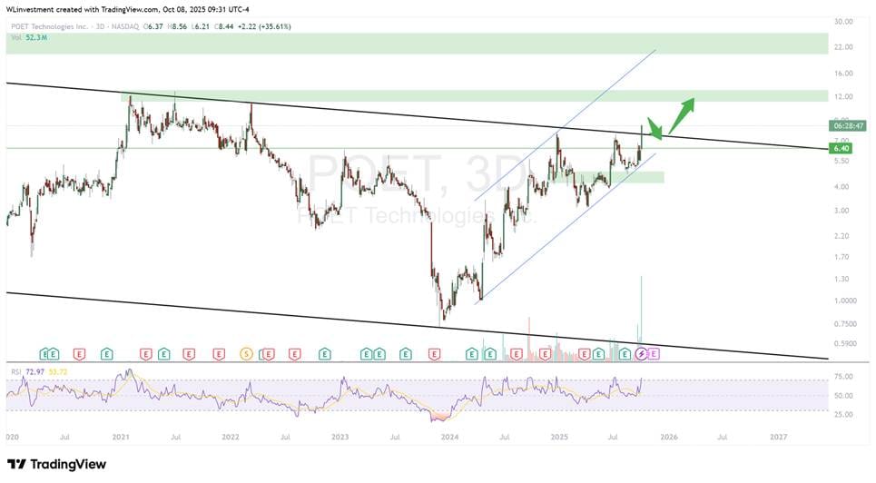 I’ve also been accumulating POET tech – another sleeper which has the fastest optical connectivity tech for GPU’s and AI data centers. Effectively they provide the mycelia that connects all the hardware in the hottest industry in the world right now increasing speeds and efficiency… and both their tech and manufacturing is patented. The only frustrating part is literally as I was writing this newsletter they announced a major investment and the stock has rocketed 40%... so do not chase here and if we pull back into the $7 zone this is a buy. I am targeting $12 then $22+
