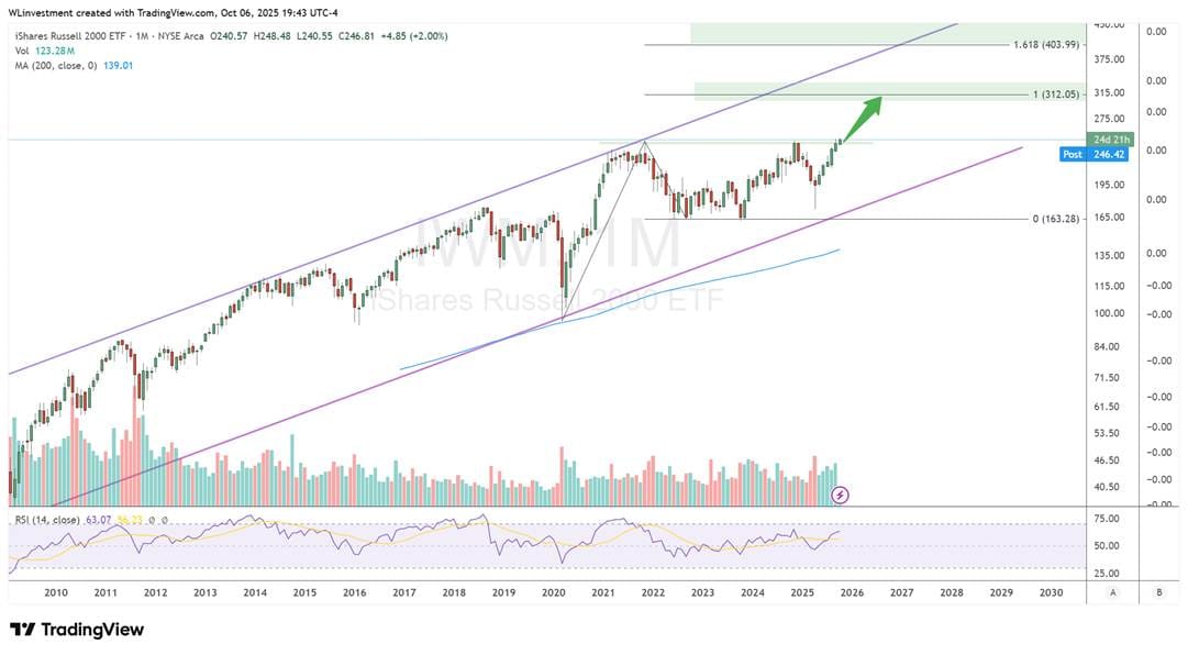 In my last update we looked at the potential for the market to correct and provide a buyable dip over the Yom Kippur holiday, and it followed the path almost exactly. From there it’s continued the rally unabated, and the S&P looks like it will hit 6860 before any real breather, that level is a giant measured move from the Oct 2023 and April 2025 lows. Divergences are piling up on lower timeframes, and risk builds every day – taking stock of how much risk is in your portfolio and selling into strength is wise here…